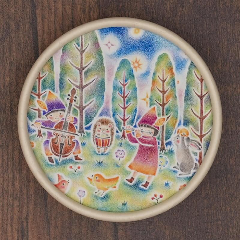 そんな夜の森での楽しい時の一場面と物語をイメージして描きました。ちいさな絵本のかけらです。