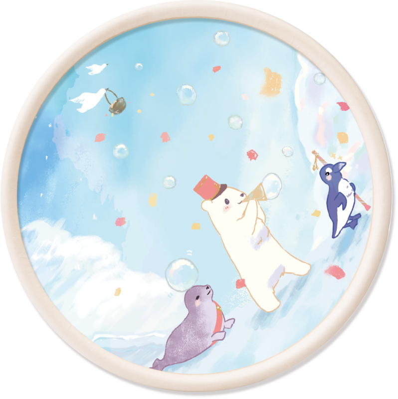 つめたい海氷と雪の中で生活している動物たちのあわあわパレード