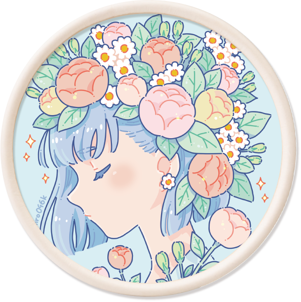 花の甘い香りに囲まれて、ゆったりとした気持ちでリラックスする・・・そんなイメージで描きました。